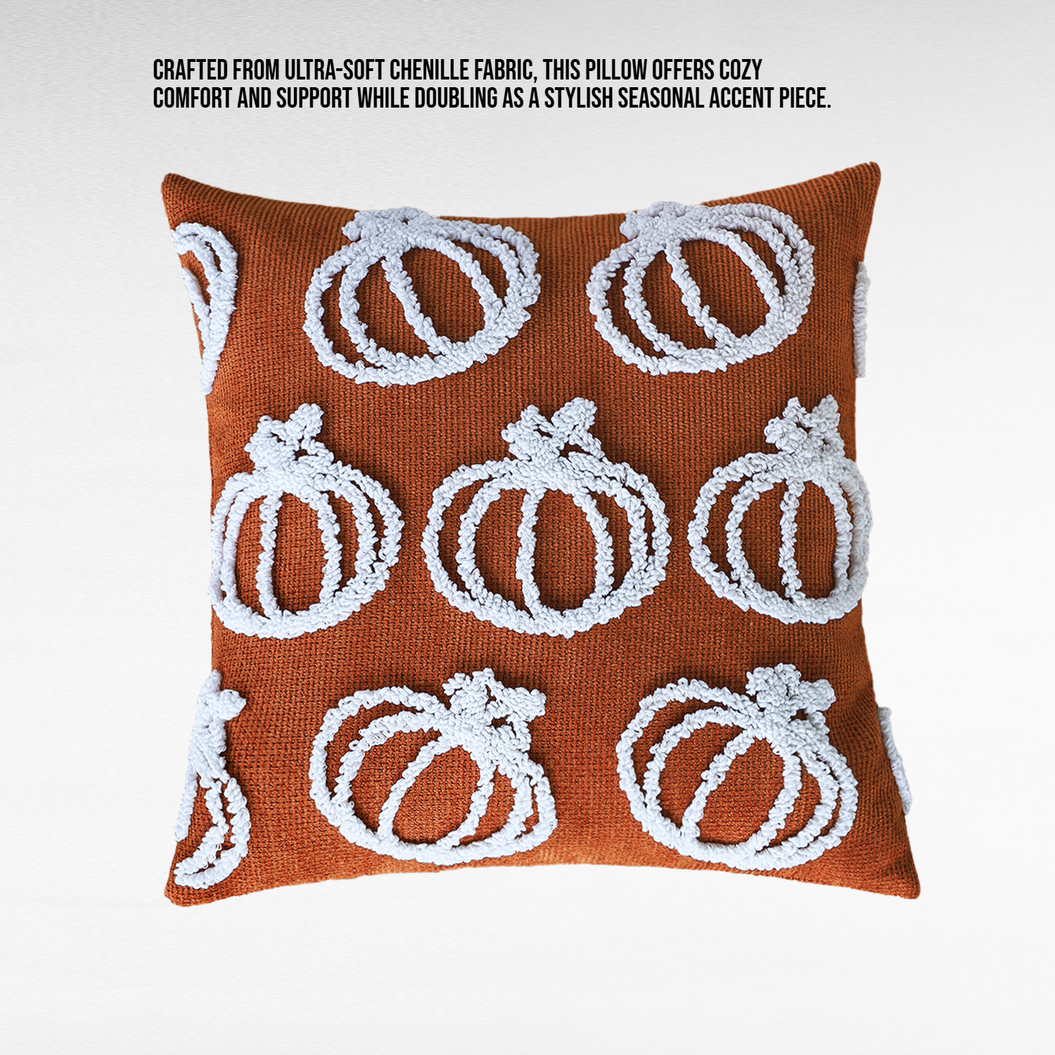 ● Crafted from ultra-soft chenille fabric, this pillow offers cozy comfort and support while doubling as a stylish seasonal accent piece.