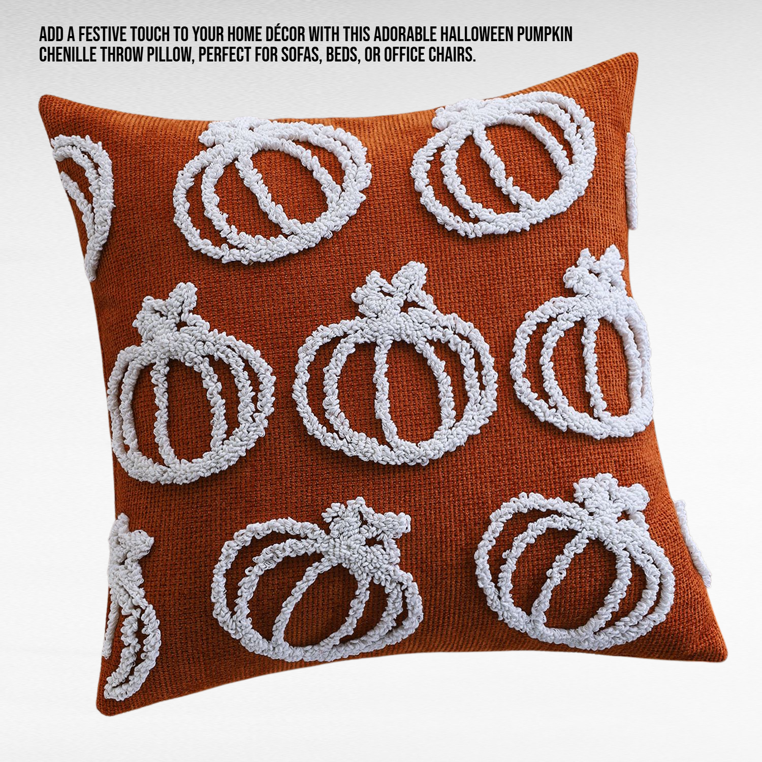 ● Add a festive touch to your home décor with this adorable Halloween pumpkin chenille throw pillow, perfect for sofas, beds, or office chairs.