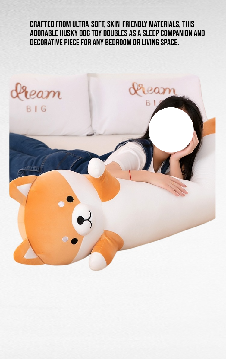 ● Crafted from ultra-soft, skin-friendly materials, this adorable husky dog toy doubles as a sleep companion and decorative piece for any bedroom or living space.